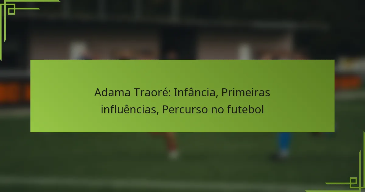 As influências iniciais de Adama Traoré foram fundamentais na formação da sua carreira futebolística e desenvolvimento pessoal. A sua família, mentores e contexto cultural desempenharam todos papéis significativos na sua orientação durante os anos formativos.