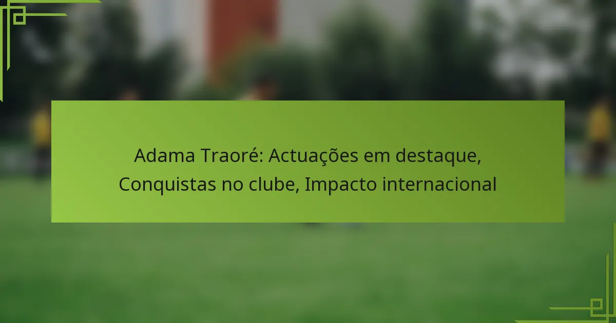 Adama Traoré proporcionou inúmeras atuações de destaque ao longo da sua carreira, exibindo a sua velocidade excecional, capacidade de drible e fisicalidade. As suas contribuições em jogos-chave não só destacaram as suas habilidades, mas também impactaram significativamente o sucesso das suas equipas.